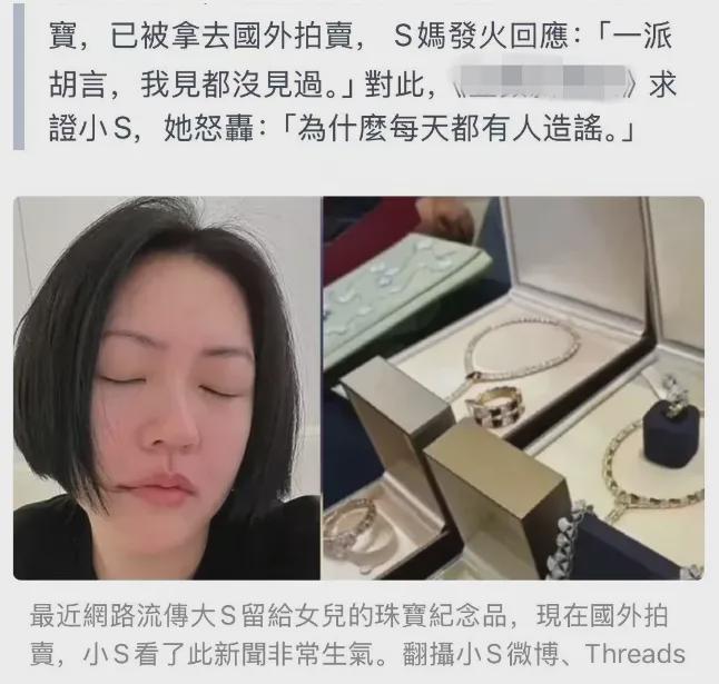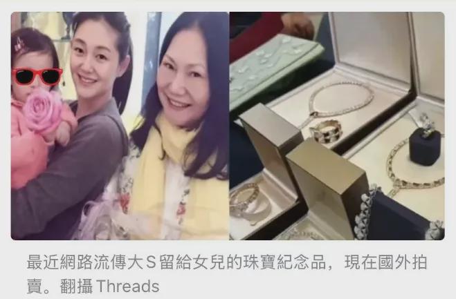 传闻称,大S留给女儿小玥儿的梵克雅宝翡翠项链、卡地亚红宝石耳环等价值2亿的珠宝,疑似被S家成员变卖。