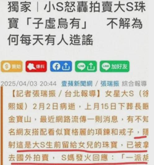 2025年3月底,一则“大S生前珠宝遭国外拍卖”的爆料突然引爆中文互联网。