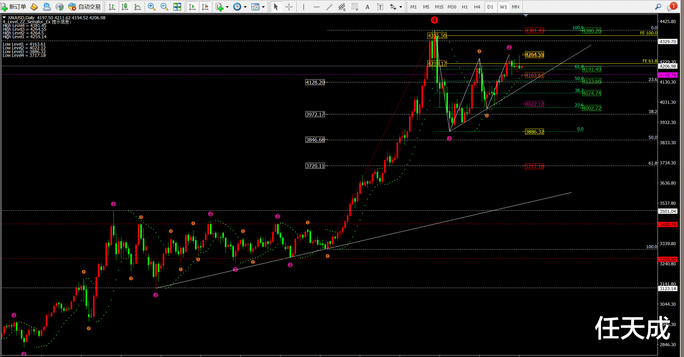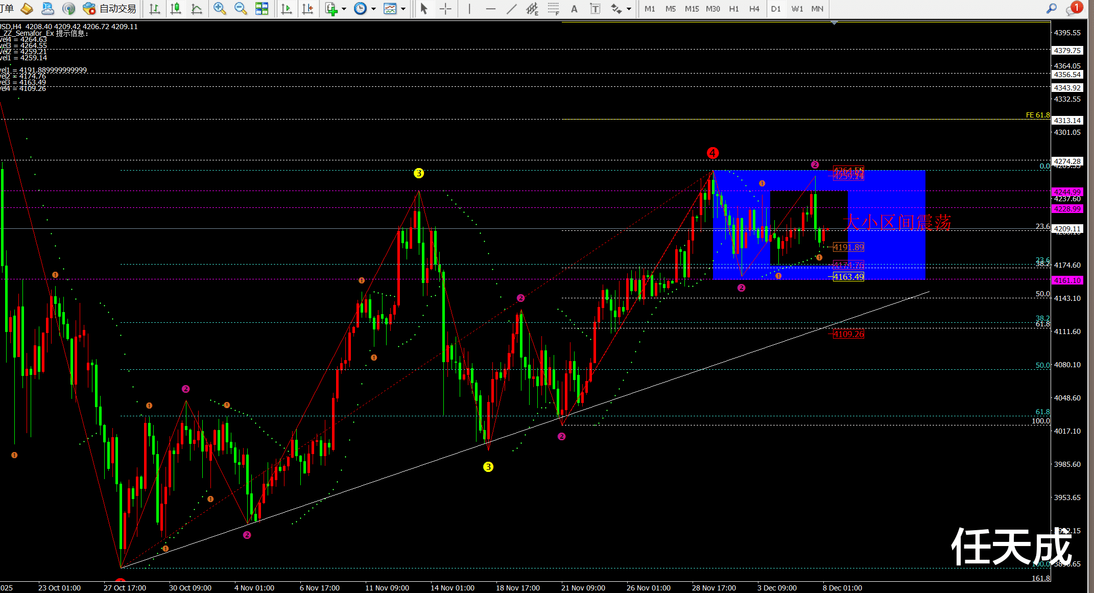 因此日线目前将在4150上方运行,也就是目前大区间是4150-4260一线。