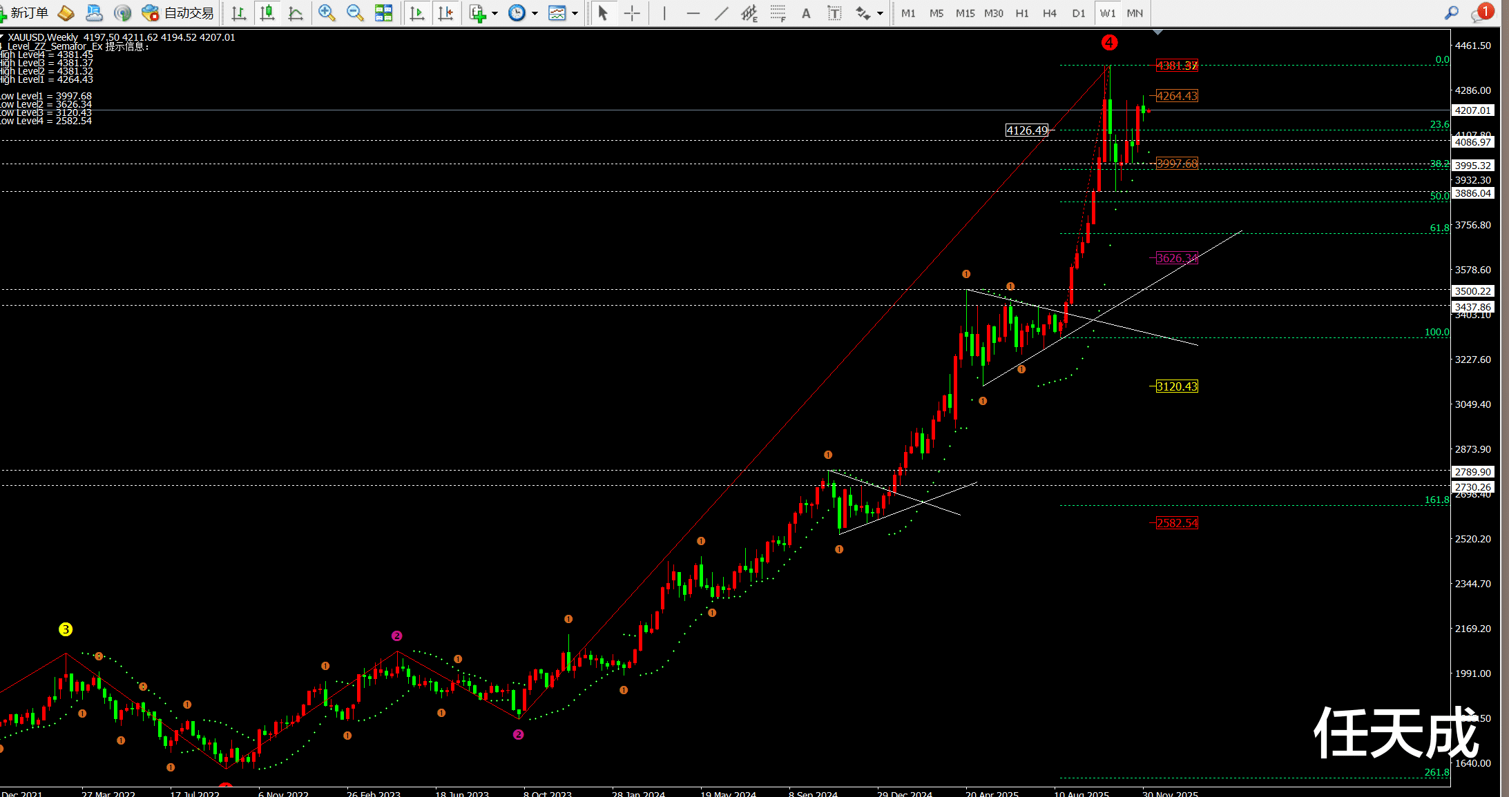 而天成从周线看震荡回落,所以我们可以持续高位布局看4000-3900-3700以及3500一线。