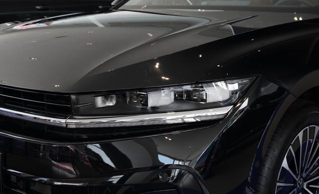 新款迈腾外观更年轻,仍保高辨识度。扁平格栅与分体式大灯由银色镀条相连,VW车标可点亮。低趴车头引导视觉,醒目且支持矩阵灯光,照明宽广不刺眼。