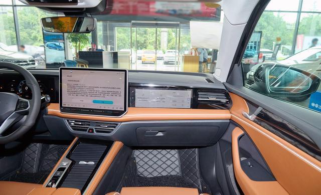 新款迈腾内饰为环抱式座舱,中控平台微倾便于操控。方向盘三辐平底,真皮包裹握感适中,配快捷按钮。另配7.11英寸HUD,驾驶员可平视获取导航、续航、车速等信息。