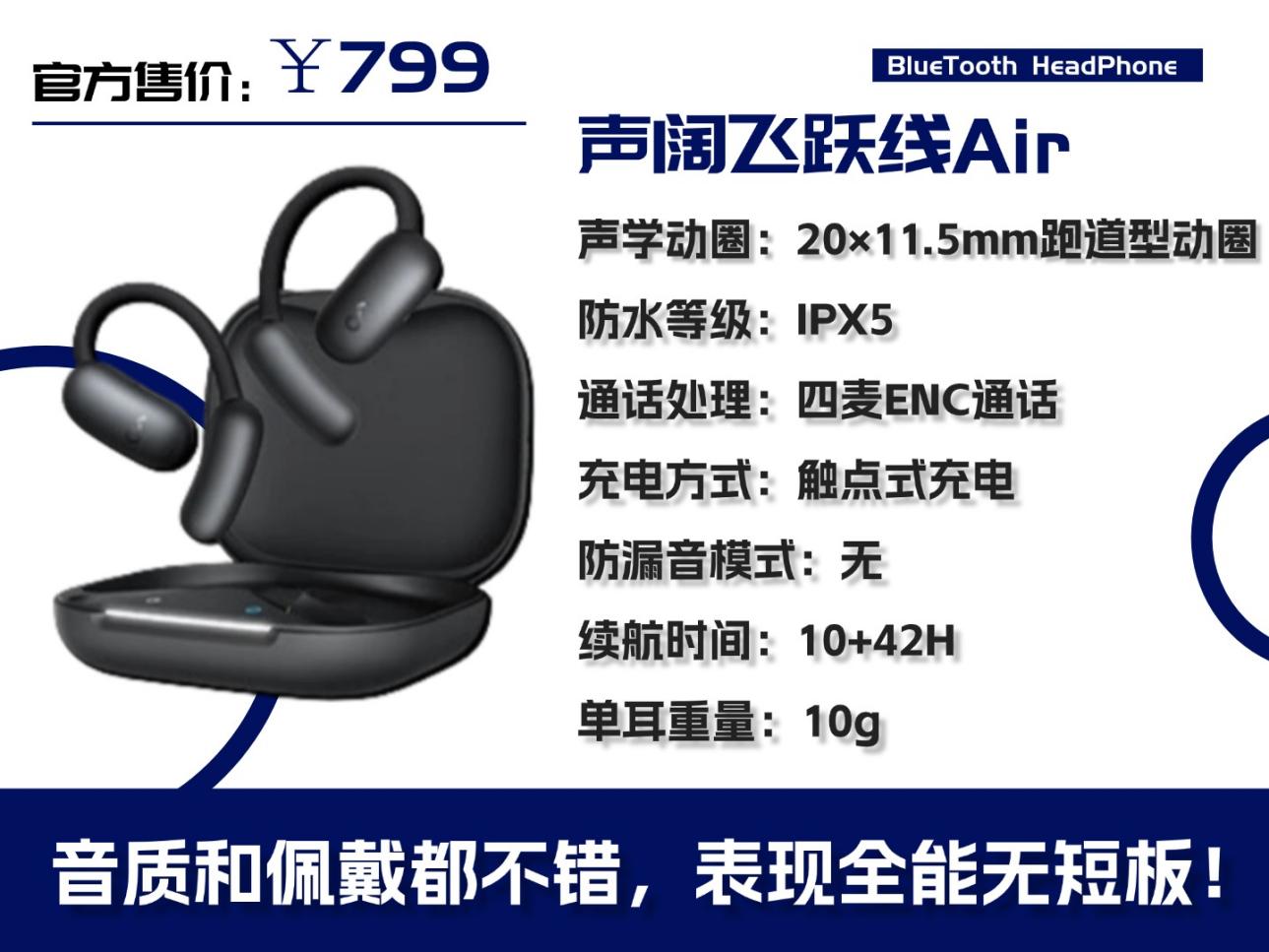 它最突出的优点就是轻便和安全。重量普遍很轻,长时间戴也没负担;而且不遮挡耳朵,能随时听到周围的声音,在户外走路时能留意身后脚步声,也能听到汽车鸣笛,不用为了听歌忽略安全问题。