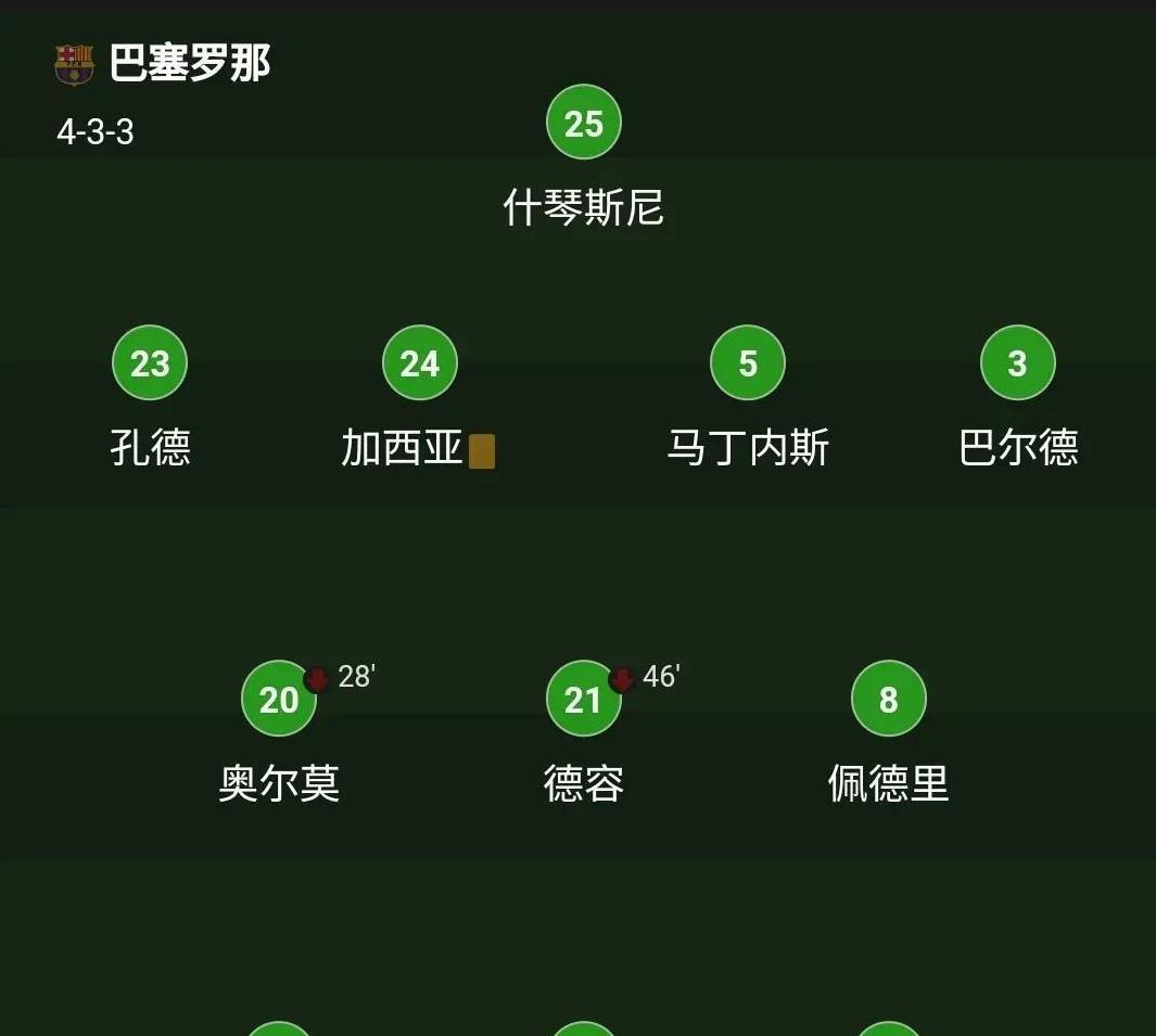 主帅弗里克此役的排兵布阵堪称大师级。顶着FIFA病毒压力,他果断轮休莱万、拉菲尼亚等主力,让加维客串左边锋,佩德里与德容组成中场双核。