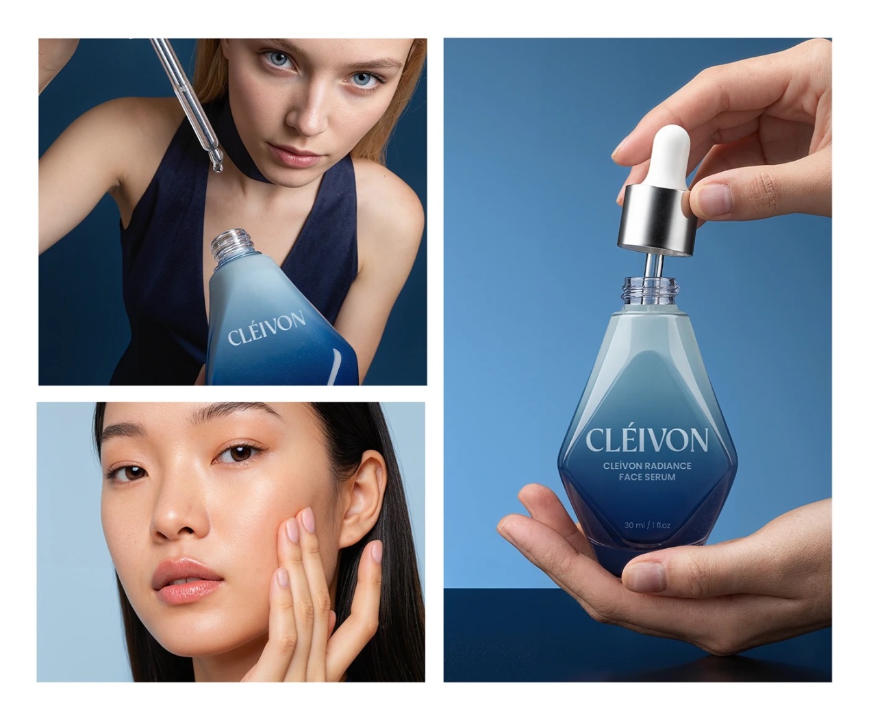 Clêivon套装包装设计是品牌“静谧奢华”理念的延伸,深度践行“好设计即极简设计”的准则,将克制与精准融入每一处细节。瓶身轮廓利落流畅,玻璃材质折射出细腻光影,瓶盖闭合的触感、纹理印记的肌理,均经过反复打磨,剔除所有非必要元素,只留存能传递品牌态度的核心表达。