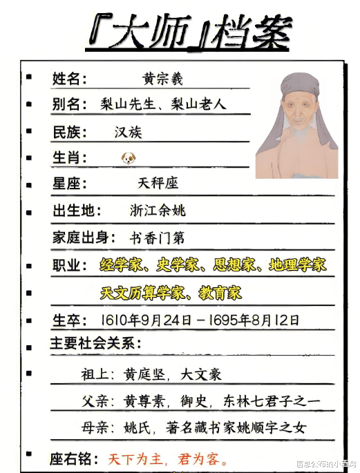 黄宗羲的观点,不但在当时称得上标新立异,振聋发聩,影响到二百多年的清末革命,即使现在细细读罢,也觉得常读常新,不仅超越了清朝,甚至合乎了现在。
