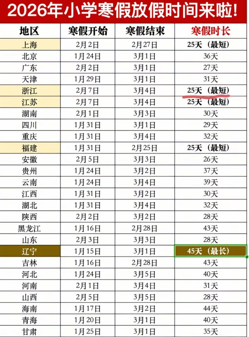 以前我还以为全国放假时间都一样呢,这几天刷视频才看到,原来这这有南北差异呀嘿嘿。