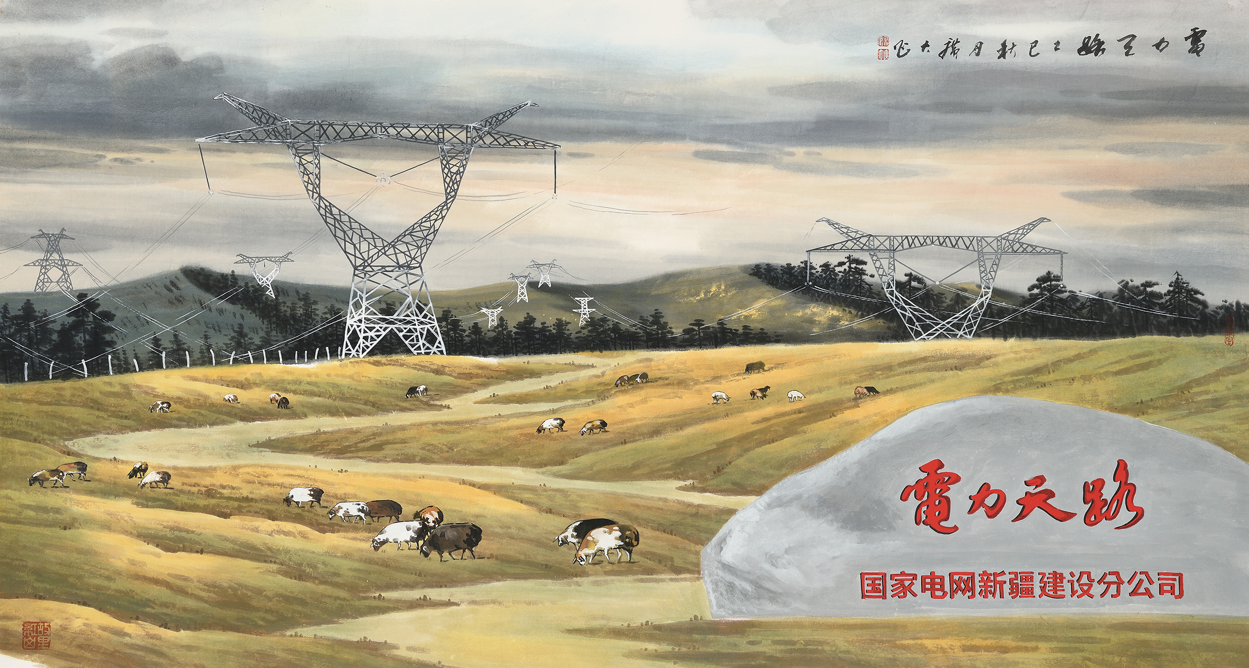宋庆 电力天路 中国画 97cm×180cm