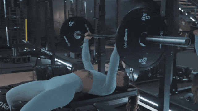 卧推决定上半身力量基准。胸、三头、前束全面参与,是最容易形成长期负重进步的推举动作。关键要点:肩胛收紧、肘部角度不过度外展、杠铃路径呈轻微弧线。常见错误:臀部离凳、耸肩、向下放时速度过快。适合目标:增肌、力量、男性训练者的上肢基础建立。变式:窄距卧推、哑铃卧推。
