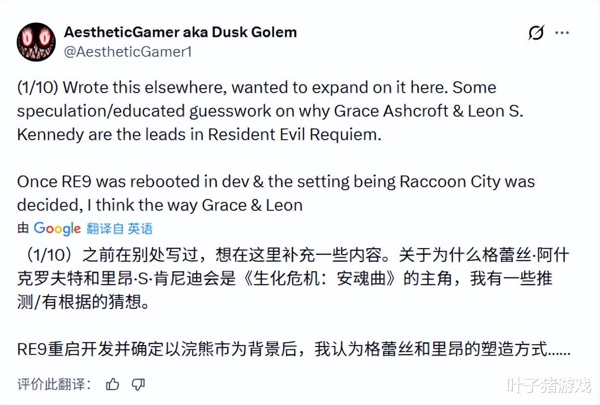 除此之外,Dusk Golem还说出里昂回归的原因,他认为:“如果故事回到浣熊市,让一位亲身经历过浣熊市事件的角色回归是十分合理。他能够带给老玩家一种‘重返故地’的叙事体验,这是许多恐怖作品常用的技巧,但《生化危机》系列此前从未真正这样做过”