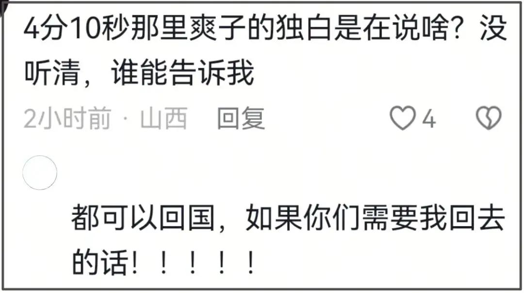 而更让人炸锅的是——她在录音里说:“都可以回国,如果你们需要我回去的话。”