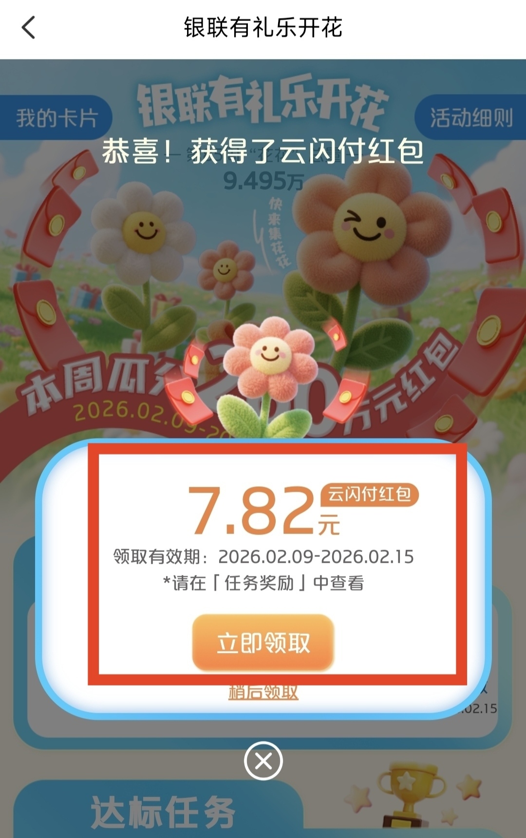 顺便说一句,云闪付集卡分千万好友助力群已开,2月16日瓜分500万,这个羊毛大家也可以顺带薅下,保底十几块。