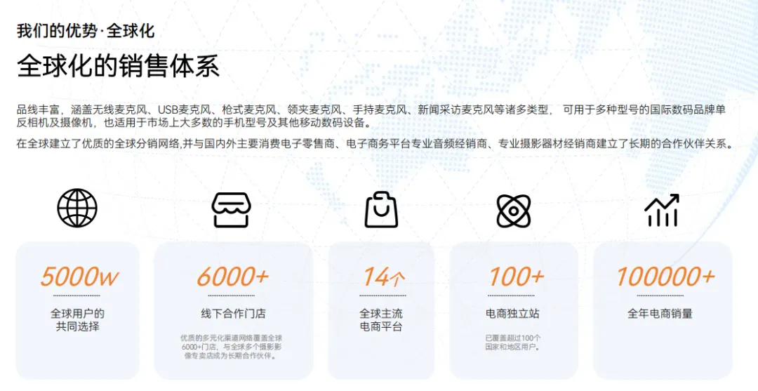 专利布局:累计获得400余项技术专利,覆盖声学结构设计、降噪算法、电路集成等领域,其中“带屏显收纳充电盒的无线麦克风”“多人对讲系统”等创新填补国内空白。