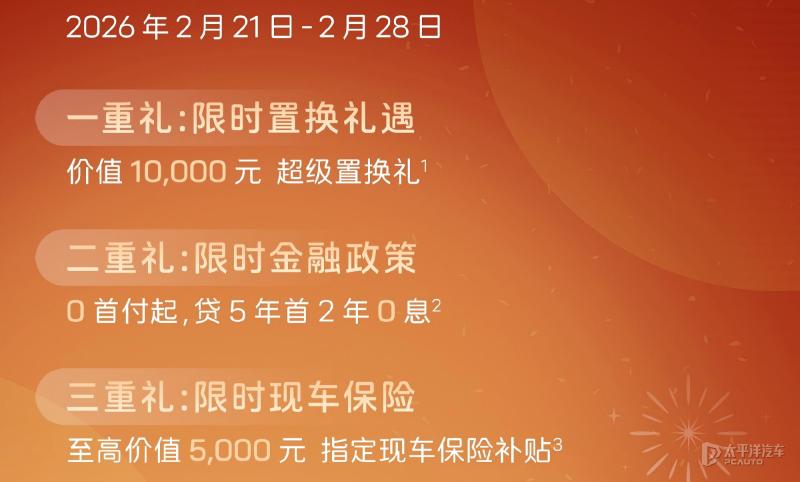 除了金融方案,活动期间下定的用户还可同步享受其他购车礼遇,如价值10000元的置换补贴和至高可享价值5000元的指定现车保险补贴。(文:太平洋汽车 彭浚哲)