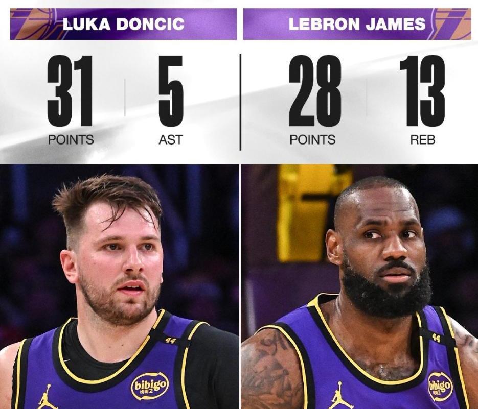 湖人双核都发力了,詹姆斯依旧稳健,21投12中砍下28分13篮板,东契奇得到31分5助攻,也逐渐找到感觉,但投篮效率还需要提升,这一场22中9。比赛结束后,湖人还有3个好消息和1个坏消息传来。