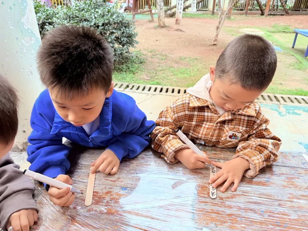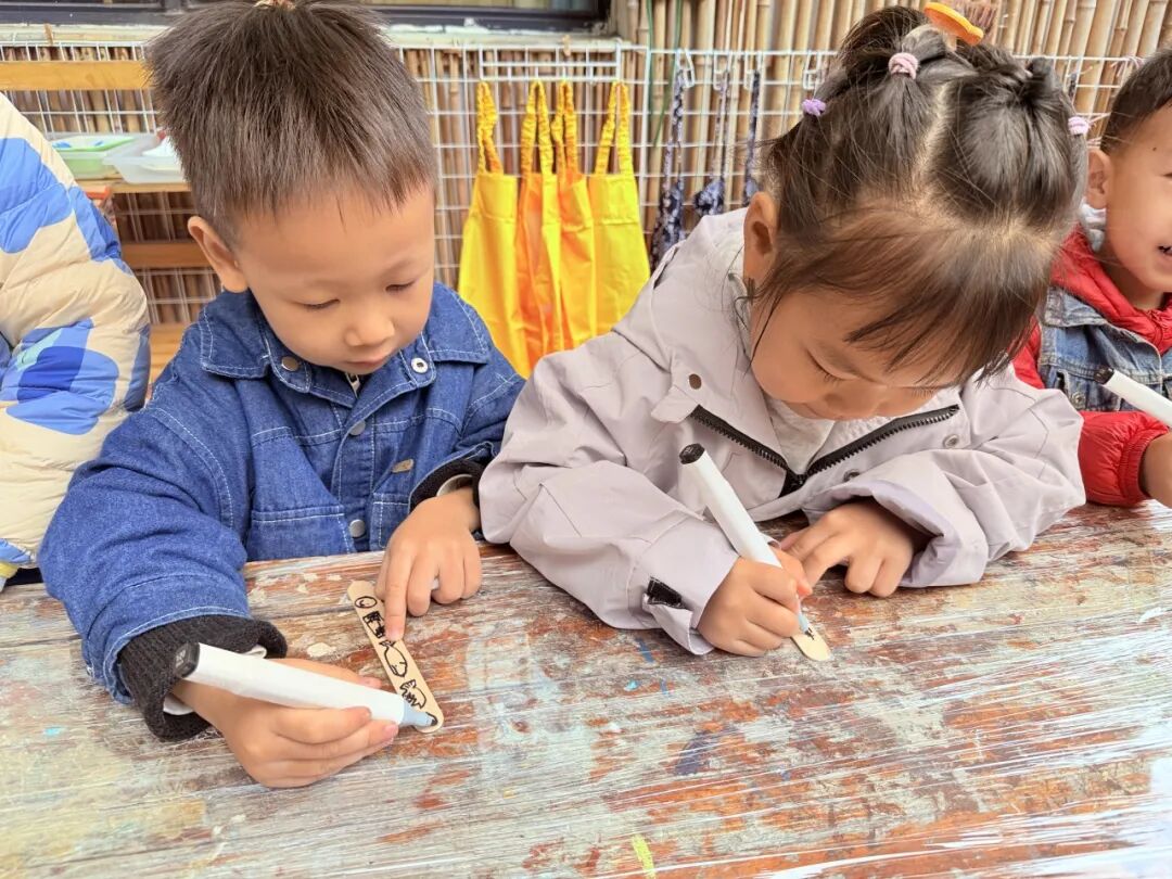简牍做好了,就成了他们独一无二的“日记本”。有的孩子用画笔描绘出户外游戏的精彩瞬间,有的则用稚嫩的文字写下今天的发现和心情。每一笔、每一画,都是最真实的童年记录。