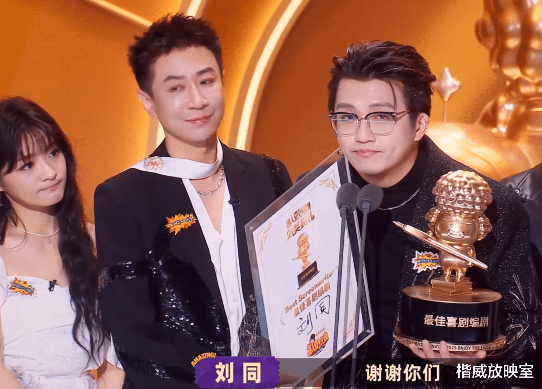 获奖感言难住了张兴朝和李嘉诚,毕竟两人台上疯癫,台下反而都不善言辞,一个干脆不说,一个不太会说,结果这个环节,还是四个编剧,都在说支持外星从,才算是完成这个获奖感言。