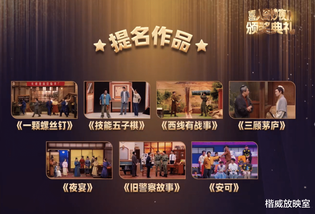 酷酷的滕虽然没有拿到编剧奖,但《一颗螺丝钉》能成为行业瞩目奖,也是一个不错的成绩。而且在喜剧的舞台上,怎么能少了东北喜剧的身影呢,而酷酷的滕和王天放他们正是继承并发展了东北的新喜剧;而《夜宴》也的确是这一季里,我个人比较喜欢的那类品质佳作,要说上档次这块,必然有这部作品的一席之地。