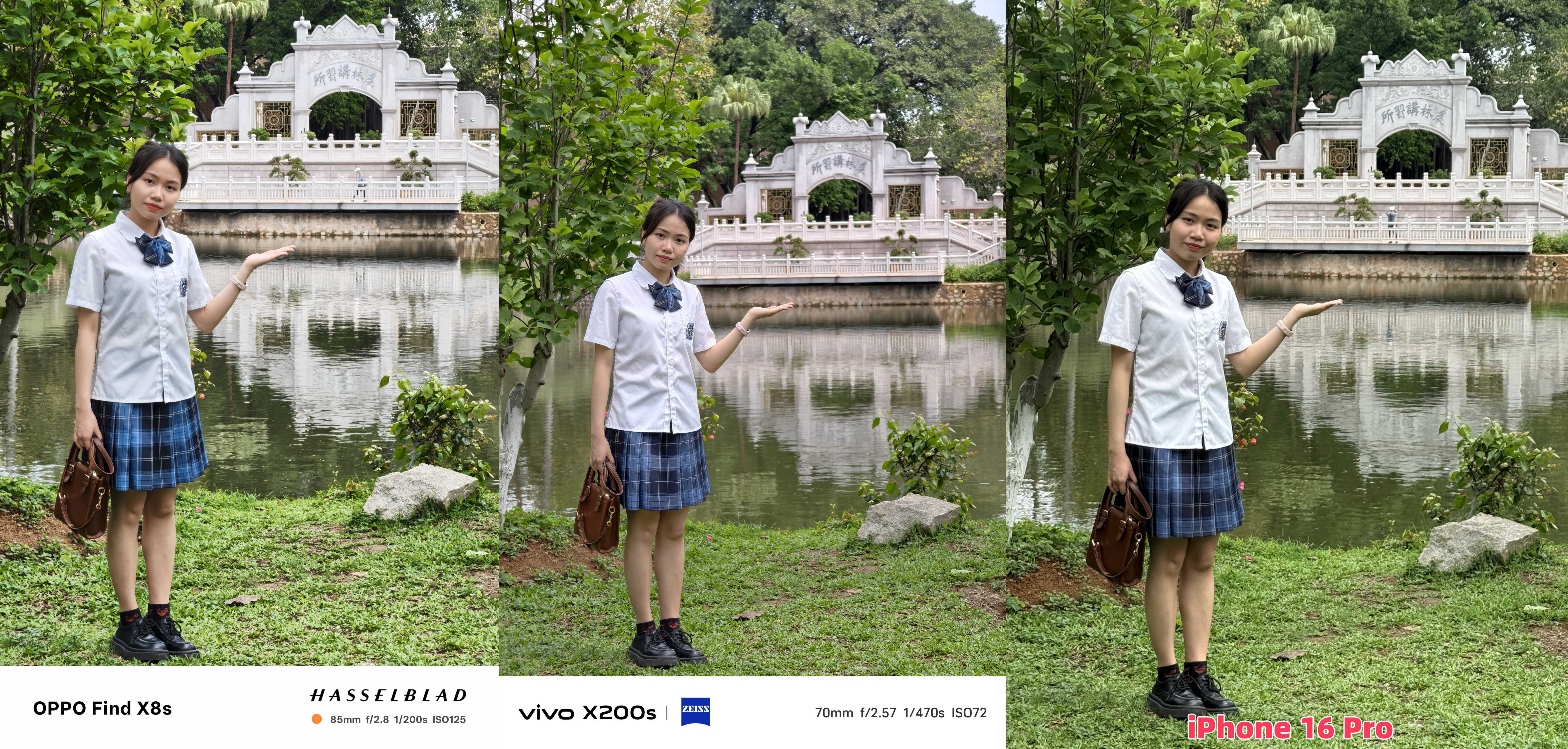 再看看国产机,OPPO和vivo直接掏出人像镜头+专属算法。vivo X200s肤色偏冷调,有点“灰头土脸”的感觉;但OPPO Find X8s绝了!拍出来的人像肤色透亮红润,细节清晰到能数睫毛,直出就能发朋友圈,简直是“人像外挂”!