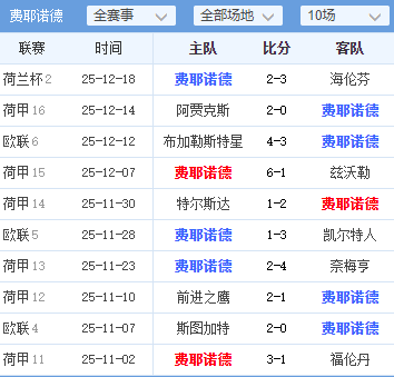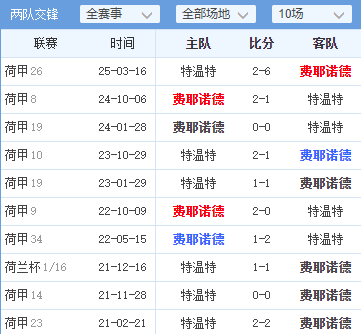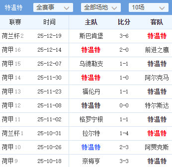 3. 防线的稳定性:两队联赛失球数相同(20个),但费耶诺德已连续12场各项赛事未能零封对手,后防线并不稳固。特温特虽然近期防守数据不错,但客场面对强队的进攻将面临更大考验。