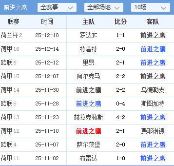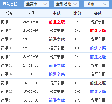 2. 主场与客场表现:前进之鹰本赛季主场表现(胜率43%)远好于客场(胜率11%),这是他们的主要依仗。而格罗宁根客场战绩稳定,胜率达到50%。