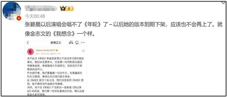 这下好了,张碧晨要唱《年轮》?不好意思,违法。