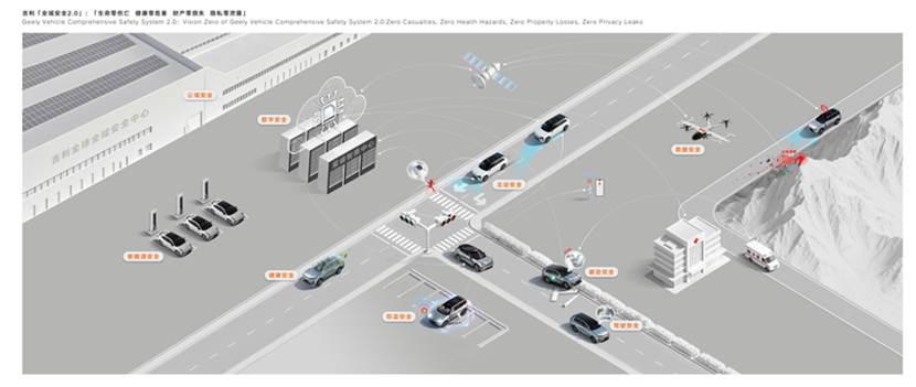 2020年,吉利率先在全行业提出“全域安全”开发体系,覆盖四大安全域、九大安全系统,由传统道路交通安全升级到广义的全域安全;