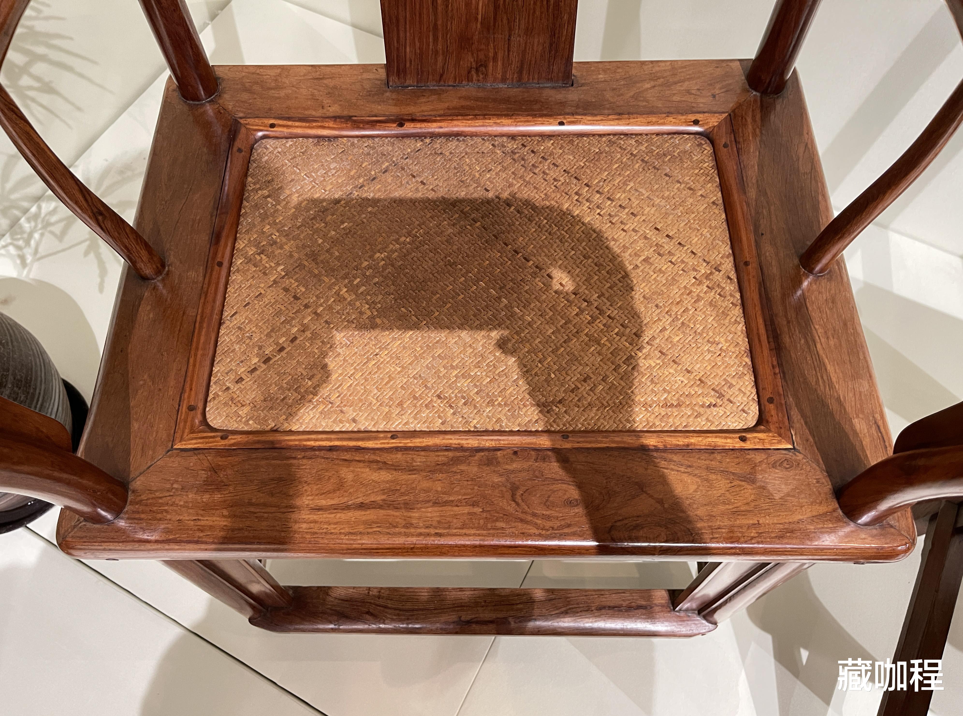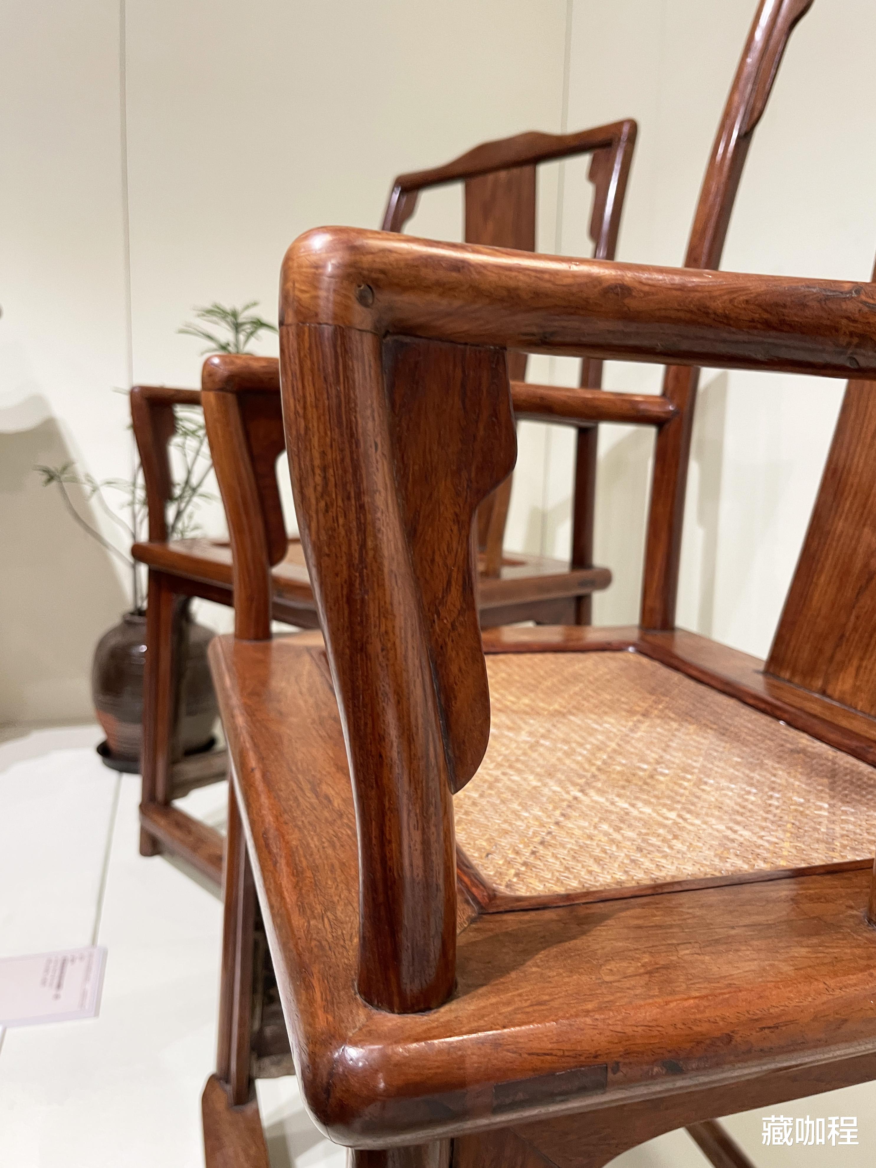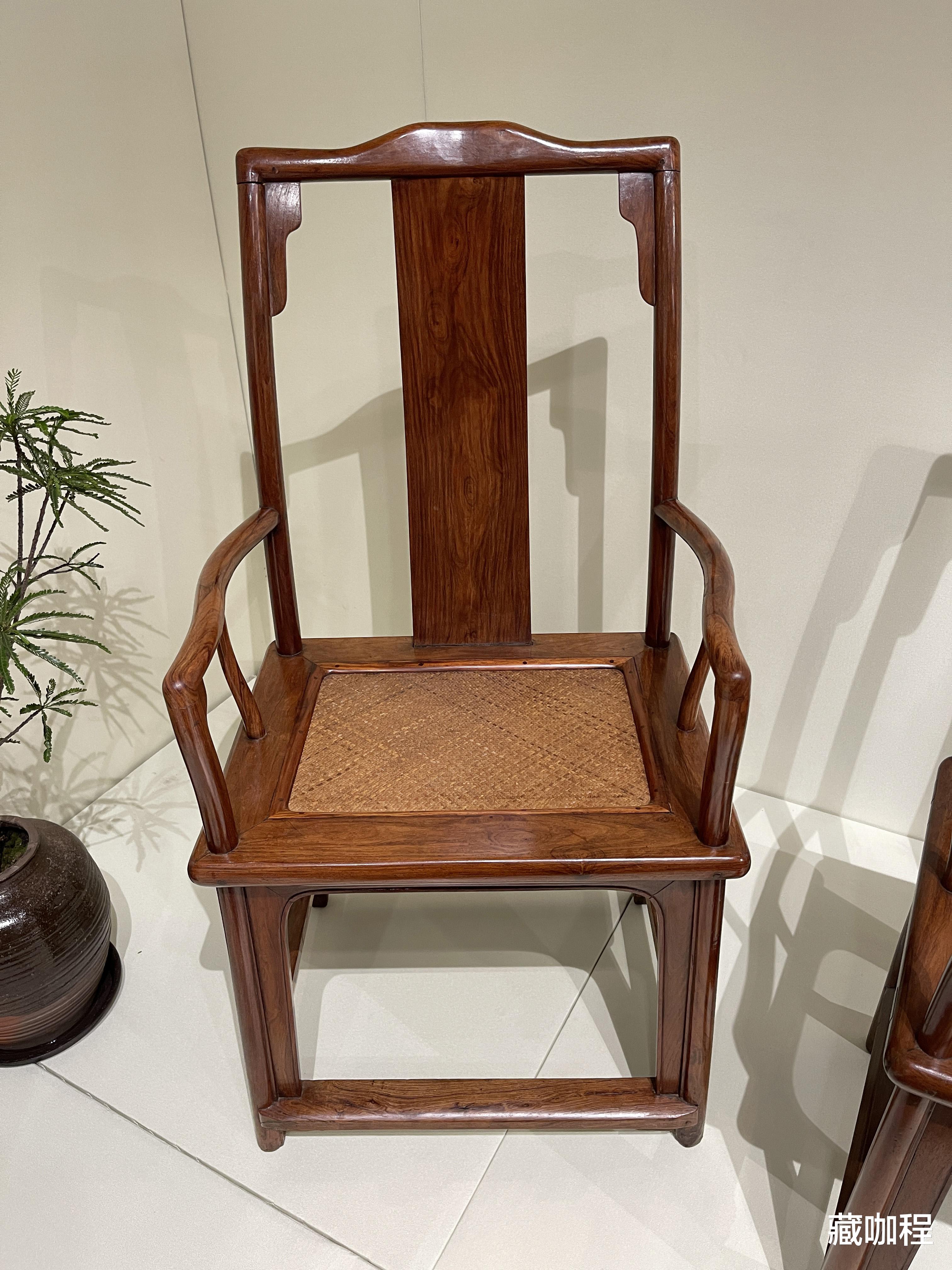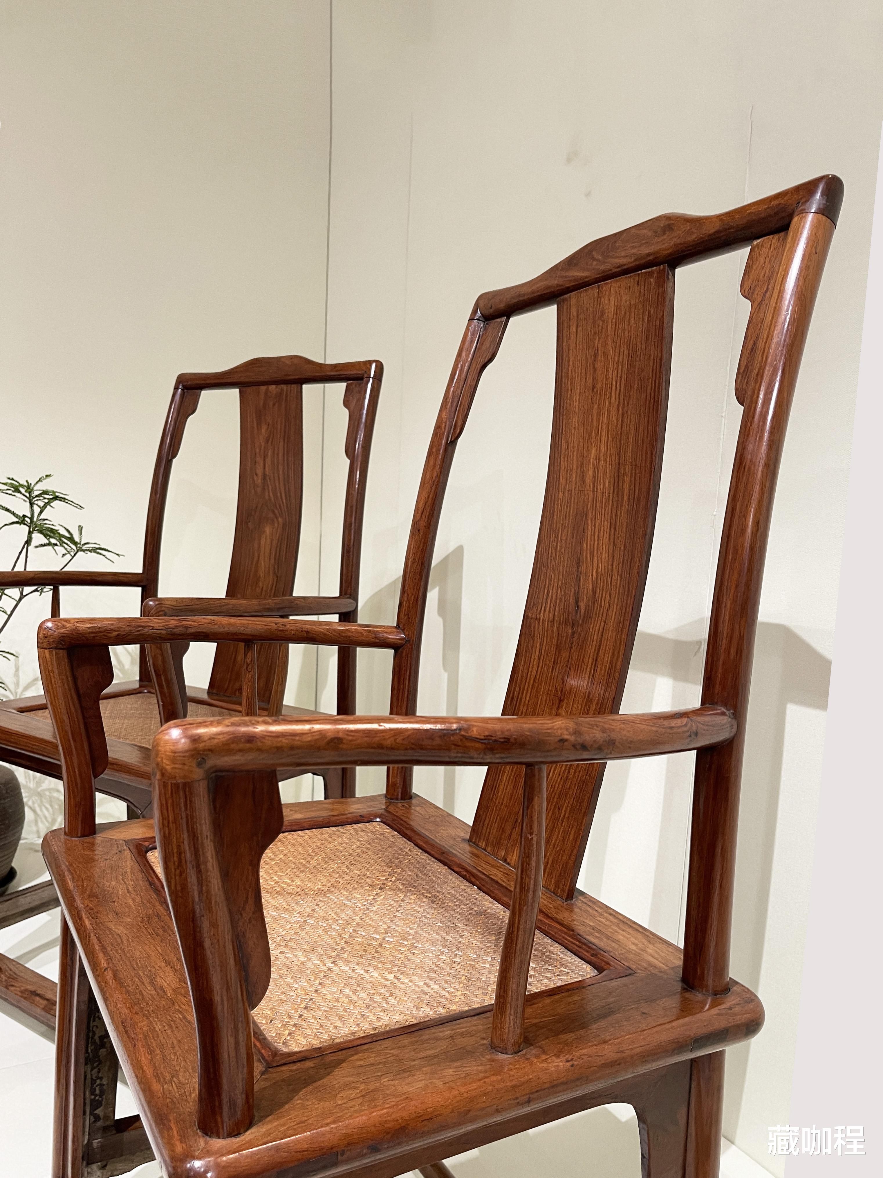 扶手低、靠背高,明式官帽椅因整体形似官帽而得名。搭脑和扶手探出的叫四出头官帽椅,不伸出的为南官帽椅。