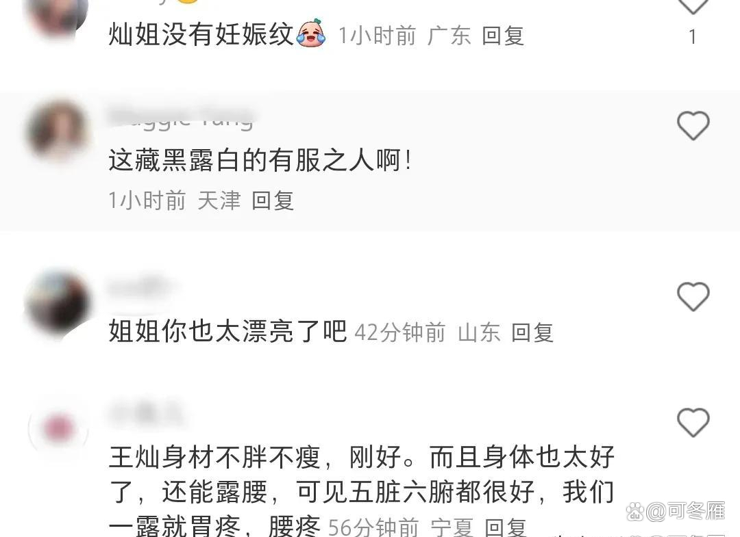 许多人都赞叹王灿兮状态极佳,生完孩子后竟然一点妊娠纹都没留下,她大方地露出腹部,展示着清晰的马甲线。尽管已经三十多岁了,但她似乎完全不担心受凉或腰疼,可见其身体素质真的非常棒。