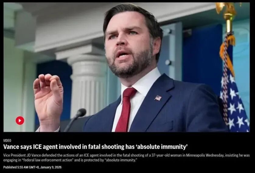 特朗普政府给ICE的绿灯,不仅是简单的砸钱扩编配武器,还公开表态会特赦有问题的执法人员。比如枪杀古德的特工,万斯说这名特工有“绝对豁免权”。