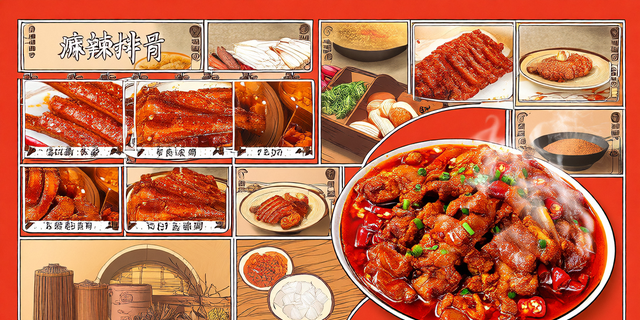 麻辣排骨,作为川菜中的经典之作,以其独特的麻辣风味和丰富的口感层次,征服了无数食客的味蕾。这道菜的精髓在于排骨的鲜嫩多汁与麻辣香料的完美融合,每一口都仿佛在舌尖上跳起了热情的舞蹈。排骨经过精心炖煮,肉质软糯,轻轻一咬,肉汁四溢,而麻辣的香料则如同川剧变脸般,瞬间点燃你的味觉神经,让你在辣中感受到麻,在麻中体会到香,回味无穷。