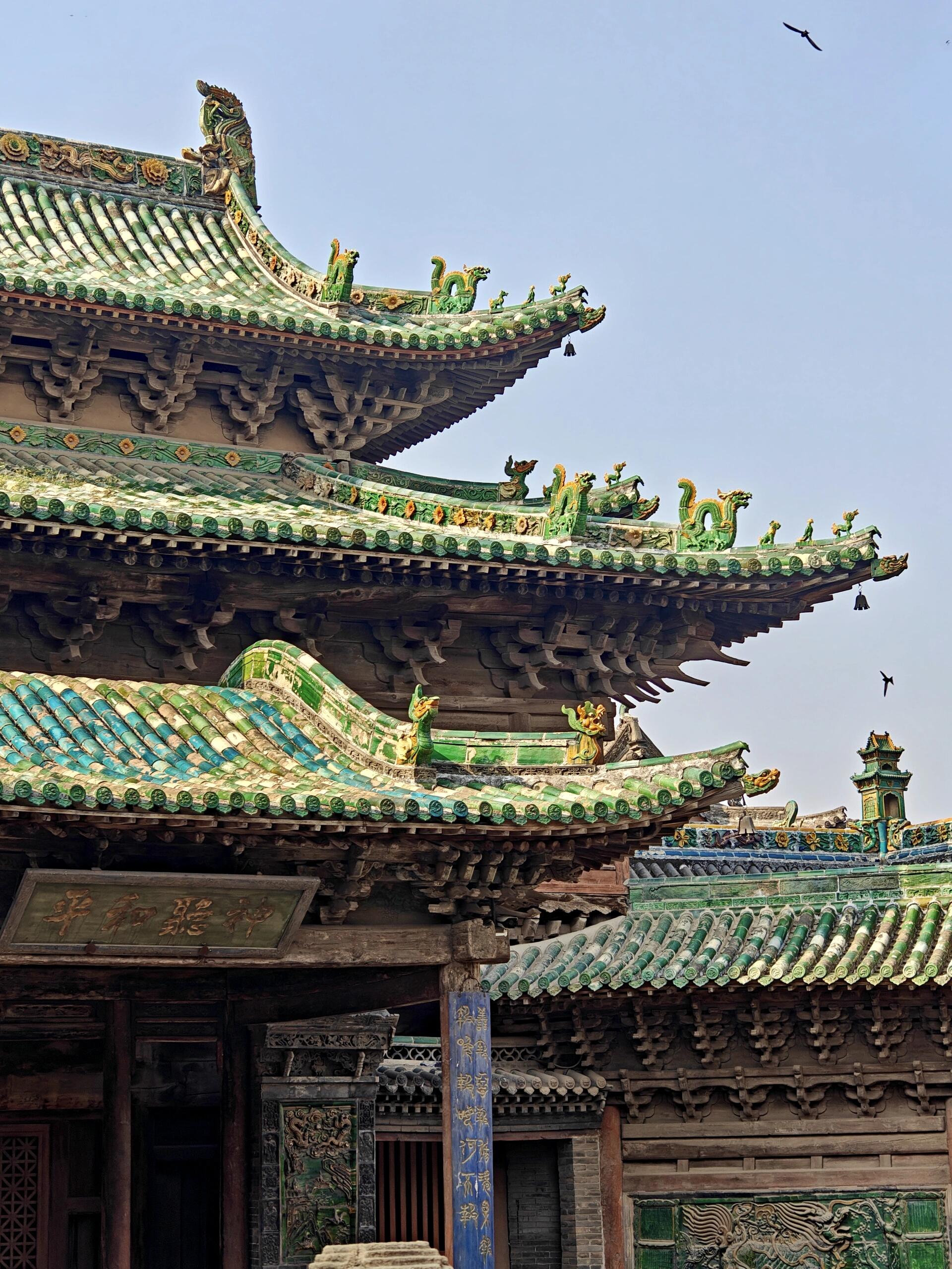 离开时已近傍晚,夕阳把玄鉴楼的影子拉得很长,孔雀蓝的琉璃瓦被染成金红色,檐角的铜铃在晚风里轻轻作响。回头望时,整座城隍庙静静矗立在榆次老城里,没有平遥古城的喧嚣,也没有乔家大院的商业化,只有一砖一瓦、一雕一刻,诉说着岁月的沉淀。同行的朋友说,1小时逛下来有些仓促,好多细节还没看清,下次要留足时间,带着放大镜来好好看。我笑着点头,心里却在想:或许古建的魅力就在于此,你以为看懂了,却总还有新的惊喜在等着你。不知道你们去古建时,会不会也像我一样,为一处斗拱、一片琉璃驻足?如果是你,愿意花78元,来这国四古建中感受“极致匠心”吗?