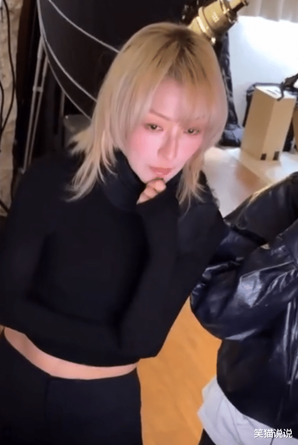 这是郑秀文在进行摄影棚拍摄时的花絮视频,在视频中可以看到郑秀文穿着黑色的长袖高领毛衣,搭配黑色的长裤。她化着精致的妆容,水蜜桃色系的腮红很适合她,衬得气色特别好。郑秀文也换了一个新的发型,是一个长碎发刘海发型,搭配这个金色的发色,跟她这一身的造型十分搭配,很有潮流时尚范。