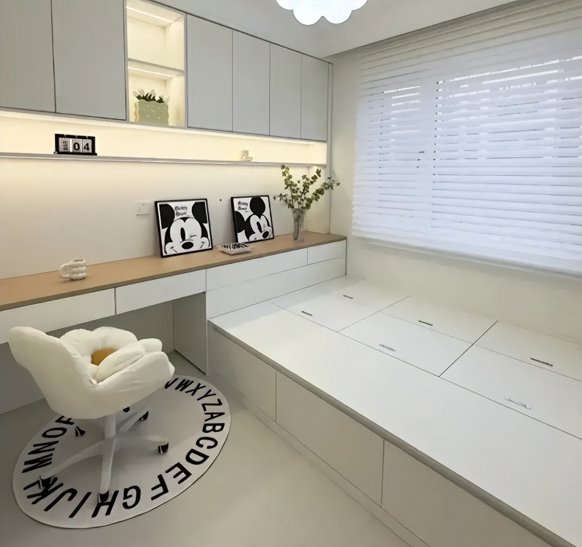 一般的床和地面之间有段距离,灰尘、头发什么的很容易就藏在那里,打扫起来特别麻烦。可抽屉床就不一样,它和地面严丝合缝的,根本不存在这种让人头疼的卫生问题。