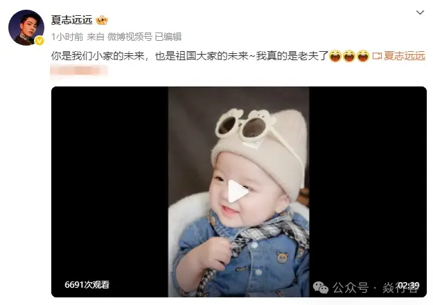 他配文中那句“你是我们小家的未来,也是祖国大家的未来~我真的是老夫了”,朴实又充满温情,没有华丽的辞藻堆砌,却直直地戳中了人们内心深处对于家庭温暖的渴望和共鸣。对于大众来说,生活的本质其实就是这些柴米油盐、生儿育女的平凡点滴 。夏志远作为一名演员,在事业不温不火的情况下,依然能享受生活赋予他的这份美好,勇敢地踏入人生新的阶段,这种对生活的热爱和对家庭的担当,让他显得格外接地气。