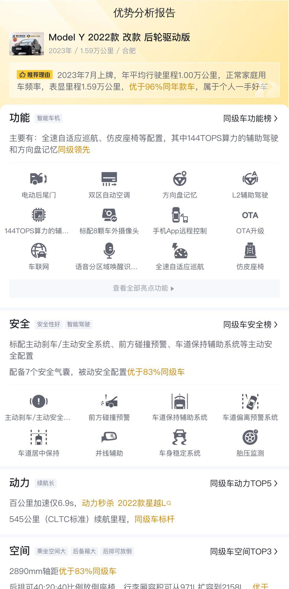 从价格来看,18.2万的价格相比新车有着巨大的优势,这对于预算有限的消费者来说极具吸引力。从车况来看,虽然存在一些小瑕疵,但整体车况良好,没有重大事故、火烧和水泡的记录,安全性有保障。从产品力来看,Model Y无论是外观、内饰、性能、配置还是空间,都表现出色,能够满足大部分消费者的用车需求。从用车成本来看,电动车的低用车成本也是一大优势。