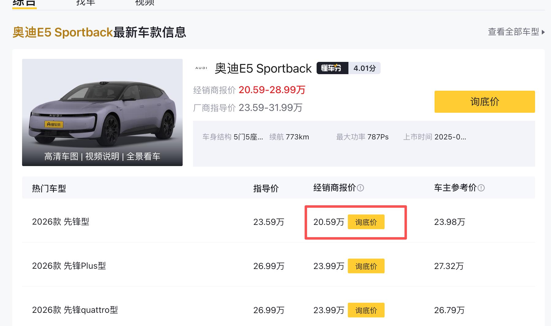 朋友们,今天必须跟大家说个实在话:奥迪这次真把价格打下来了!上汽奥迪E5 Sportback限时直降3万元,权益后起售价直接干到20.59万,quattro版也只要23.99万。这价格,比特斯拉Model 3入门版便宜近3万,比小米SU7后驱版还低1万,BBA的性价比真不是说说而已。