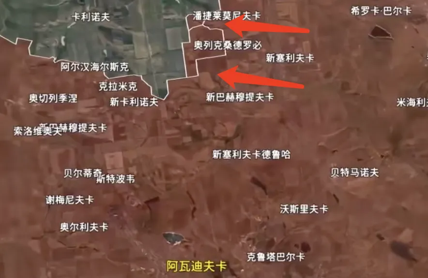 当地时间3月24日,俄军在阿瓦迪夫卡北侧新增2处阵地,总面积为8.26平方千米,并顺便解放了奥列克桑德罗必和潘捷菜莫尼夫卡。