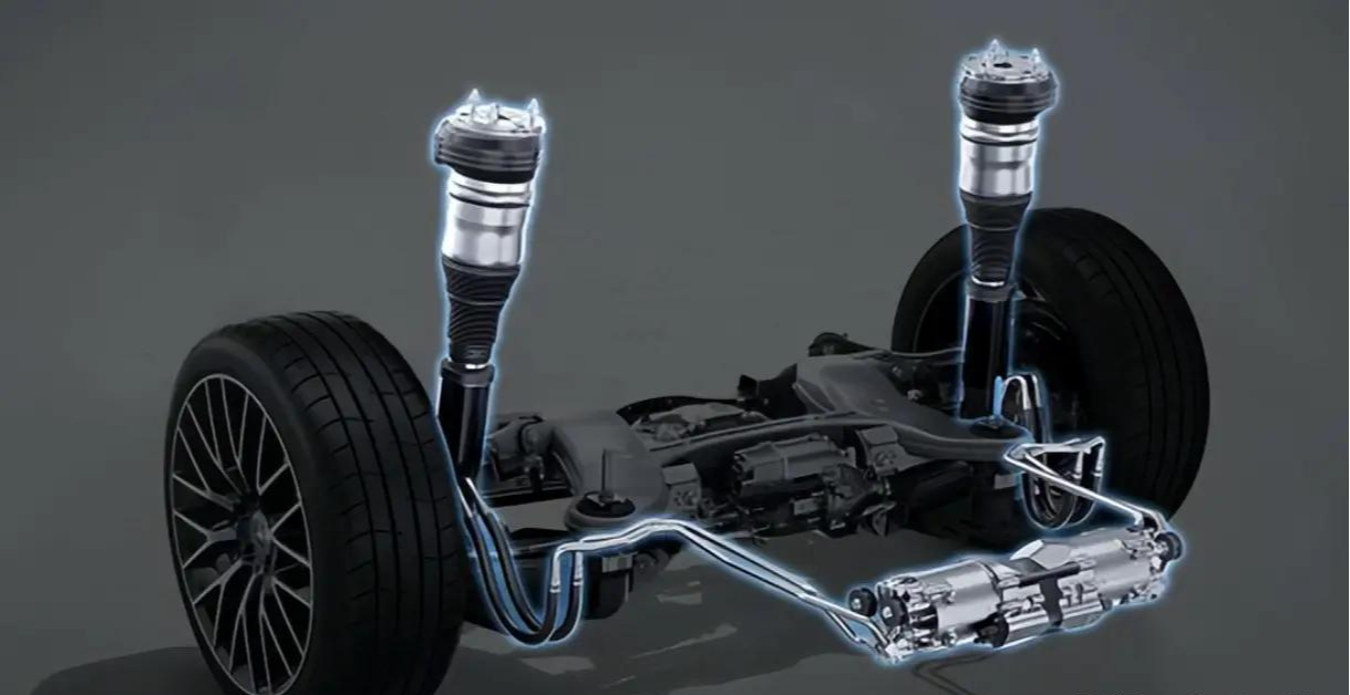 空气悬挂的核心组件包括空气弹簧、空气压缩机、电磁阀。