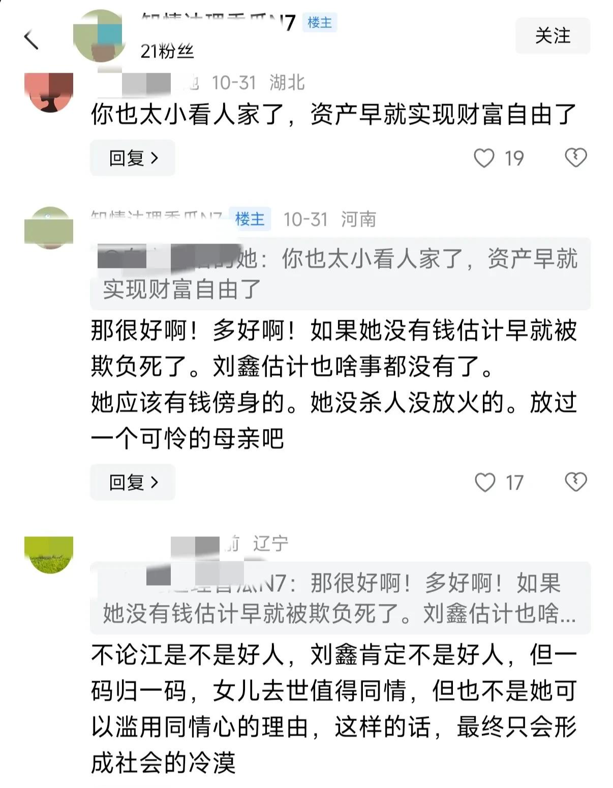 时隔多年,近期理记为前调查记者张洋发多条微博,质疑江歌妈妈“失独”、“单亲妈妈”人设造假,有过多段婚姻,且涉嫌骗取五保户,抢占男方家产,募捐千万善款,但不公开善款数额,属于诈捐等内容。迅速把江歌妈妈又送上了热搜,再次成为公众焦点。随着舆论的发酵,江歌妈妈人气直线下降。