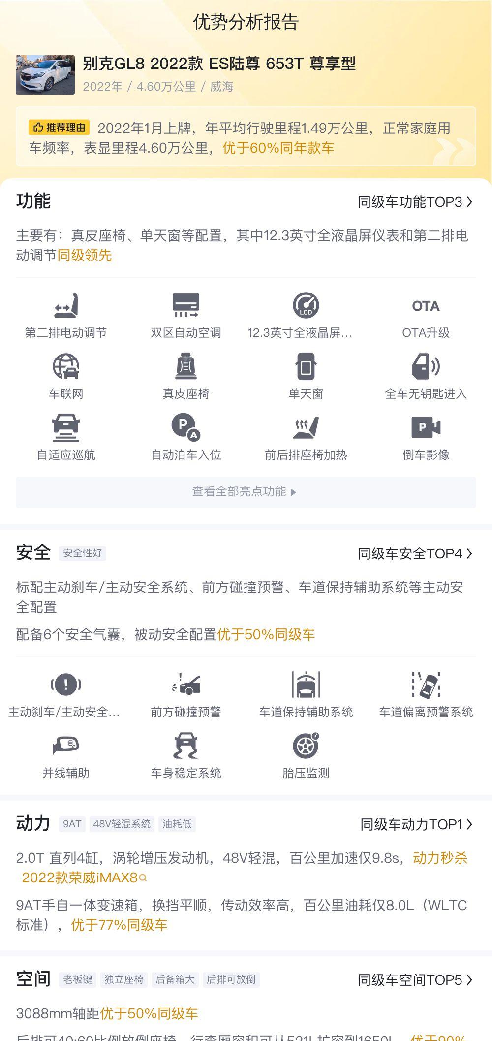 首先,我们得承认,GL8在国内MPV市场的地位几乎无人能撼动。宽敞的空间,舒适的乘坐体验,再加上别克的品牌加持,让它成为了商务接待、家庭出行的首选。这款2022款ES陆尊 653T 尊享型,更是配置丰富,全速自适应巡航、360度全景影像、各种驾驶辅助系统应有尽有,开起来说是享受也不为过。