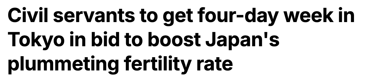 近年来,日本的低生育率问题持续严重,已连续 15 年人口负增长。为应对这一情况,东京市政府近日宣布了一项创新举措:为政府工作人员引入四天工作制,希望通过改善工作与生活的平衡,来鼓励生育。