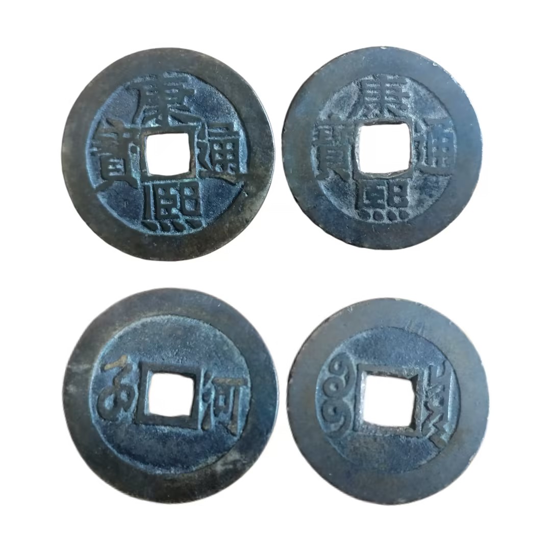 黄铜材质的稳定价值 采用 “高配比黄铜” 铸造,铜、锌、锡比例经过精准调试,既保证硬度又兼具温润质感 —— 两枚钱历经三百年,仅表面形成自然氧化的黑褐色包浆,无明显腐蚀、变形,边缘无磕碰缺口。相比清代晚期 “偷工减料” 的劣质钱币,这种 “耐得住时光” 的材质优势,是价值保值的核心支撑。