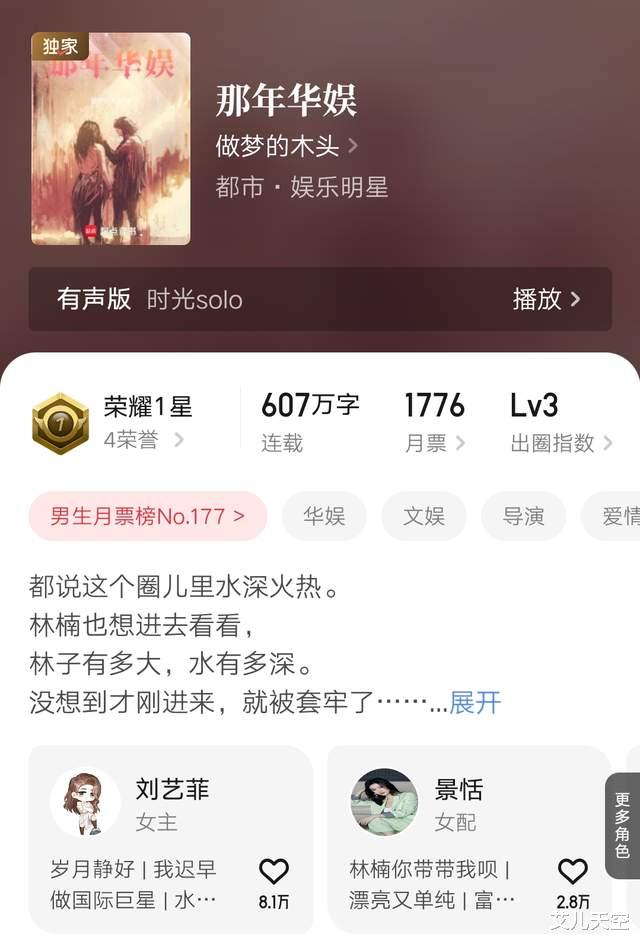 小说写得还是很长的,从2023年元旦到现在快三年三个月了,六百多万字两万订以上的成绩,在起点华娱文里也是很靠前的了,尤其走得还是单女主刘亦菲路线,还在养书的或许可以捡起来开始看了,毕竟距离完结不远了。
