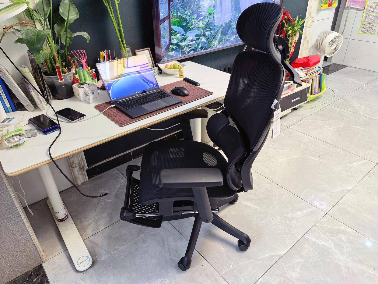 头枕高度和角度可调,贴合颈部曲线;扶手支持上下、旋转和后仰联动,操作键盘或手机时手臂有支撑。座椅本身也可以调节高度,整体适应不同坐姿。