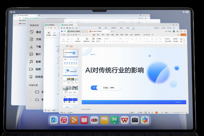 华为笔记的实时AI字迹调整功能可将手写内容自动美化;AI手写公式识别能将手绘的复杂公式转化为标准格式,直接用于论文。此外,鸿蒙电脑同款应用,如WPS Office、万兴脑图、剪映专业版等专业软件以桌面级形态登陆平板,支持AI一键生成PPT、AI排版、AI思维导图等强大功能,让平板真正成为媲美电脑的生产力工具。