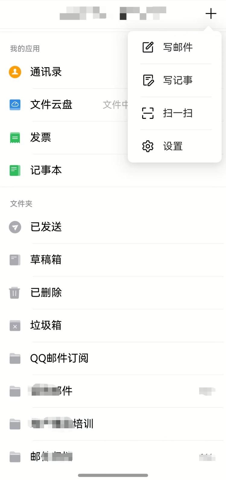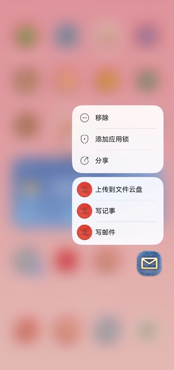 桌面长按QQ邮箱图标,可以直接选"写邮件"或"写记事",省去了打开应用再找功能的步骤。