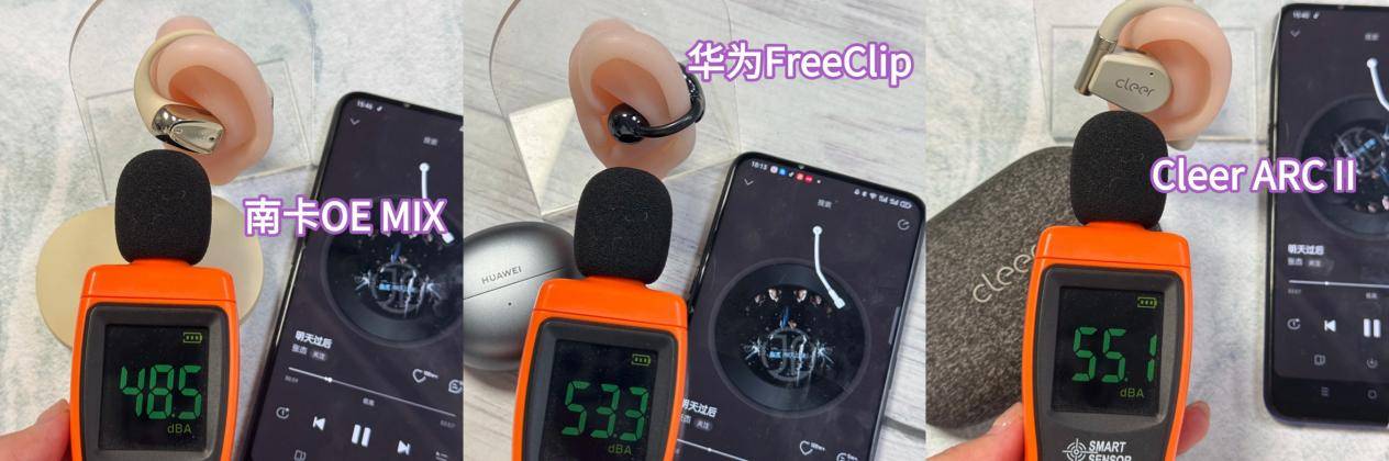 华为FreeClip耳机则位于三款耳机的中间位置,漏音程度介于南卡OE MIX和Cleer ARC II之间,表现尚可,但在某些环境下仍可能影响他人。