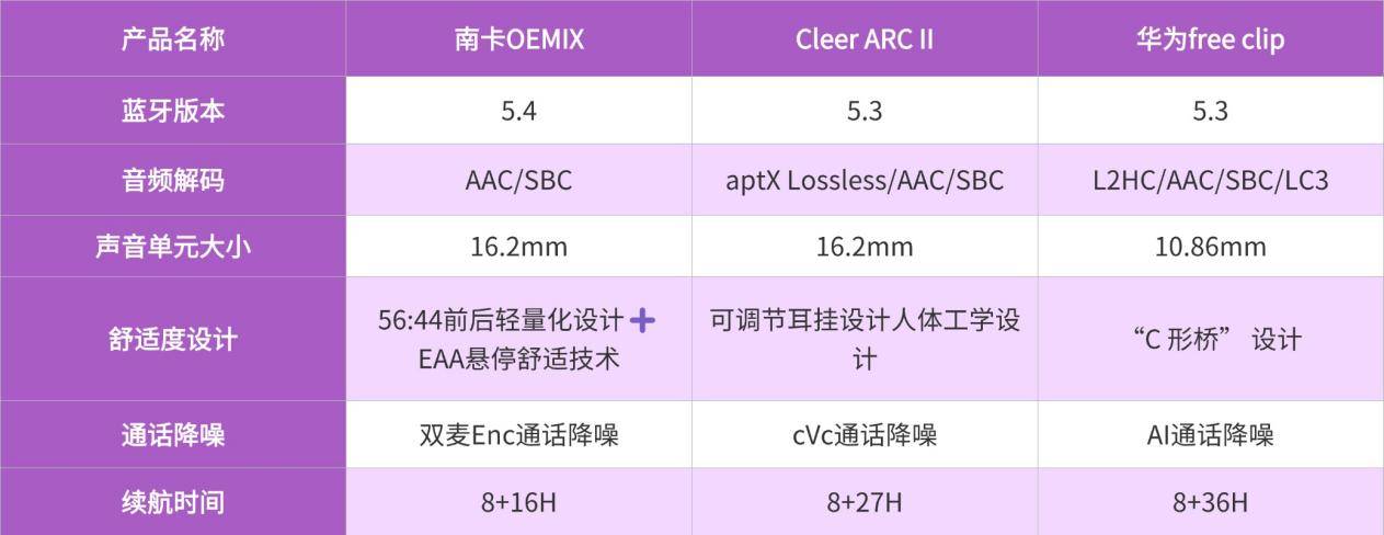 南卡OE MIX、Cleer ARC II以及华为FreeClip这三款开放式耳机在市场上备受瞩目,凭借各自的特色吸引了众多消费者关注。为了更全面地了解它们在实际使用中的表现,我们将围绕多个核心维度展开对比评测,深入剖析它们在音质、佩戴舒适度、连接稳定性、续航能力等方面的具体差异,帮助大家做出更加理性和精准的选择。