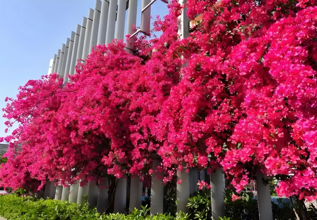 修剪能保持三角梅良好的株型、促进新枝萌发还可以有限的防治病虫害,所以在生长初期,她就会对嫩梢进行打顶摘心,促进侧枝生长;花后她会及时剪掉残花、枯枝、病枝、过密枝,减少养分消耗;她说对于生长多年的植株,她会进行重剪,保留主要枝干,促进新枝萌发。